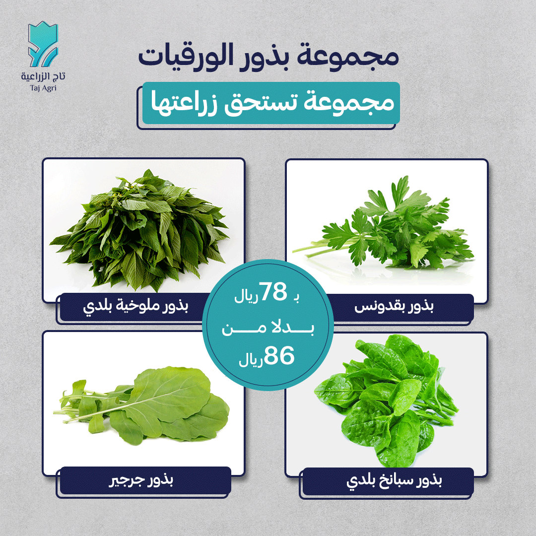 البذور هي المصدر الأساسي في غذاء الملايين من الناس في جميع أنحاء الأرض، ومن خلال البذور يتم استخراج النباتات والمحاصيل وأيضا الزيوت وبعض الأنواع من التوابل. ولأننا في تاج نعلم أهمية هذه البذور جيدًا، ومدى اهتمام الكثيرين بزراعة طعامهم الصحي بأنفسهم، وفرنا مجموعة بذور الورقيات التي تضم أربعة أنواع من البذور الأساسية التي لا يجب أن تخلو حاصيلك منها؛ بسعر حصري فقط لعملائنا.